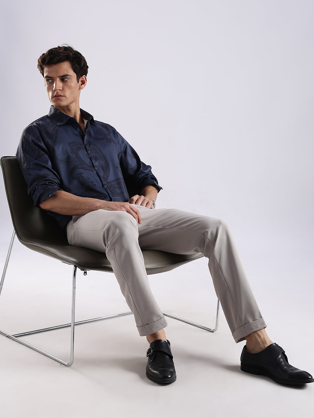 Inspired by old-world aesthetics, this navy satin shirt features detailed antique artwork in a sleek, modern cut. Lightweight and expressive, it brings a quiet drama to your wardrobe.